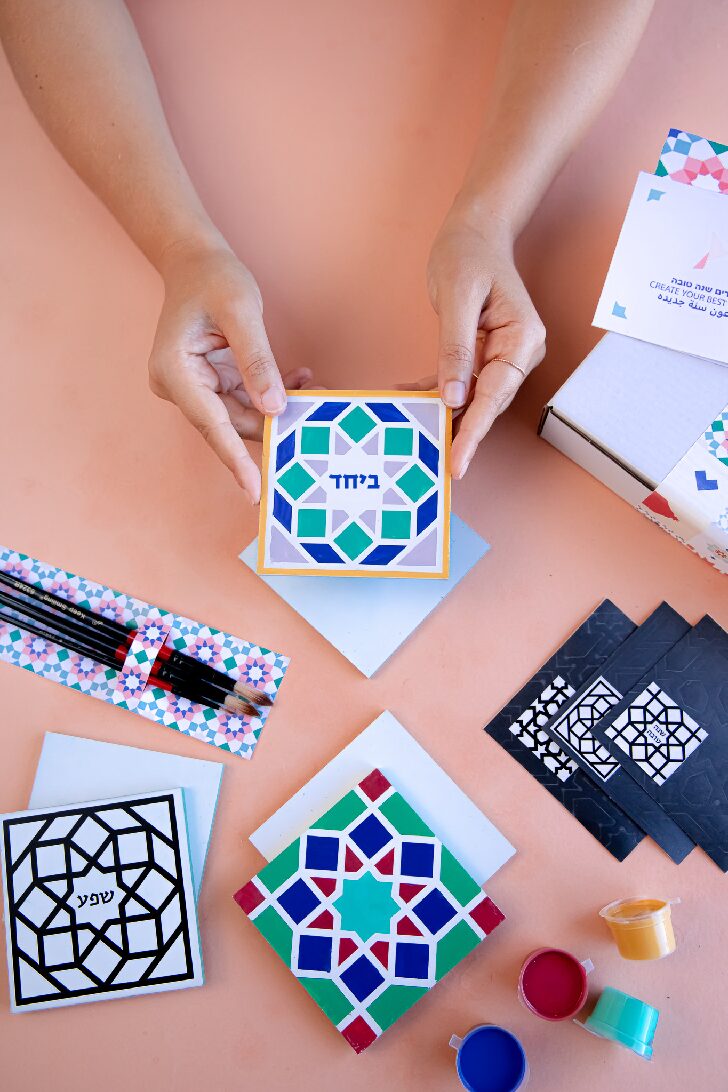 ערכת יצירה שתאפשר לכם לחגוג יחד גם בכותלי הביתה, בחוויית יצירה כייפי, מרגיע ומחבר, ובסופו - אריחים ישראלים בגווני כחול-לבן, מעוררי גאווה. הטכניקה הייחודית שלנו מאפשרת תהליך יצירה שמתאים לכולם (החל מגיל 5-120), ויוצרת זמן איכות משפחתי מקרב ומרחיב את הלב. בדיוק מה שנדרש בימים אלו.